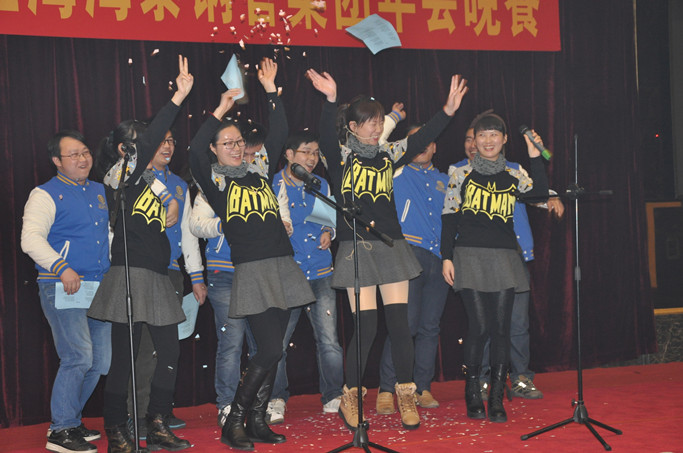 晚會節目精彩紛呈,高潮迭起;無錫海泰的集體舞《THE FOX》跳出了大家對2015年的幸福憧憬;采購部的合唱《奔跑》唱出了員工激情奔放的歡快心情;海泰新員工精心準備的舞臺情景劇《大話經典》一經上臺,就贏得了臺下掌聲陣陣;海泰國貿的《小人舞》更是給我們帶來的新穎的娛樂元素。這些精彩的節目不僅給大家帶來了歡聲笑語,同時也讓同事之間彼此的心更加貼近。公司領導與員工親情互動、激動人心的抽獎活動,讓歌聲、掌聲、歡呼聲一直在會場上蕩漾。
