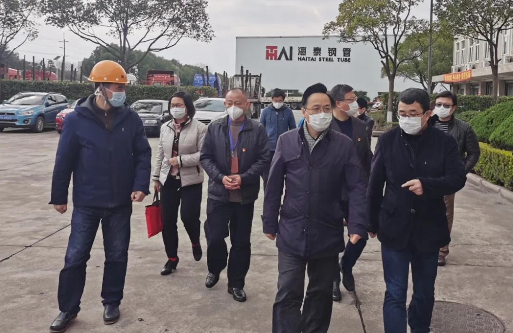 3月2日下午,鎮黨委書記王建,鎮黨委副書記、鎮長李強,副鎮長施利平一行蒞臨上海海泰鋼管(集團)有限公司(下稱“海泰”)了解海泰復工復產和防疫工作開展情況,并為海泰送上口罩、消毒水、手套、額溫槍等防疫物資。