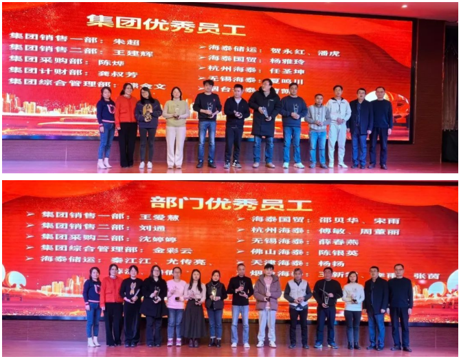接下來,副總經理杜海燕女士宣讀《關于表彰2023年度海泰鋼管集團先進個人的決定》,希望公司全體員工以他們為榜樣,進一步提高思想素質和服務技能,齊心協力,為推動公司高質量發展做出新貢獻。隨后由集團副董事長王曉健先生、總經理顧祥先生、副總經理毛艷女士、杜海燕女士親自為集團先進和部門先進員工頒發獎杯。