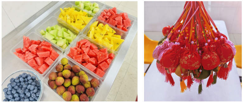 7日下午,大家在總部食堂集合,一邊吃著水果,一邊歡喜地挑選著心儀的香囊,五彩的香囊面料如同綻放的花朵,每一款都洋溢著濃厚的節日氛圍。大家將精選的艾葉放入香囊之中,每一片艾葉都散發著淡淡的清香,隨著封口被輕輕扎緊,一個個精美的香囊便誕生了,它們猶如小巧玲瓏的藝術品,令人賞心悅目。