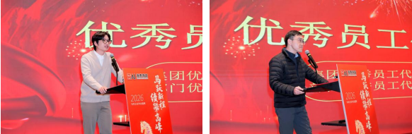 隨后,表彰環節如期而至,現場掌聲雷動。公司對2025年度表現突出的集團優秀員工與部門優秀員工進行了隆重表彰,獲獎員工依次上臺領獎,接過榮譽獎杯臉上洋溢著自豪與喜悅。