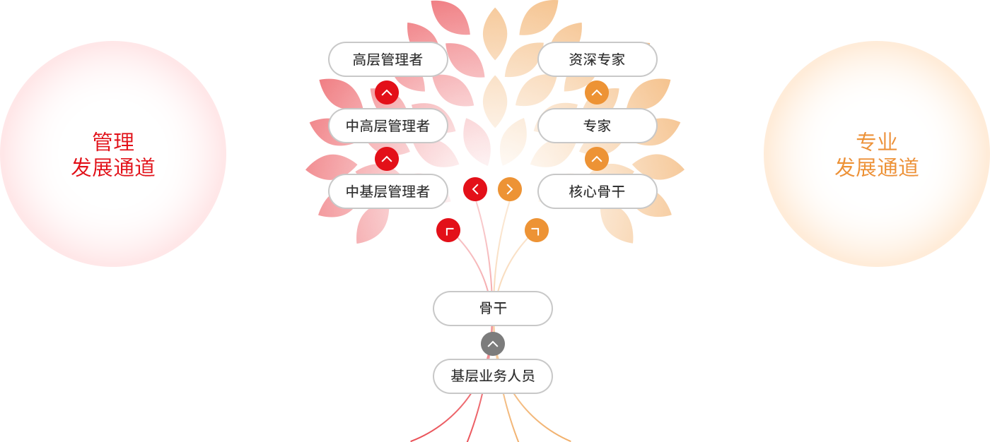 通過建設員工雙通道,在各職位序列實行“專業晉升通道與管理晉升通道并行發展”的任職機制,保證業務領域中業績突出的員工,在待遇上不受管理層級的限制。公司會根據員工的特點,為員工和各級后備人才進行職業發展規劃,明確其職業發展的方向,同時,通過系統培訓、輔導、職位輪換等培養手段,幫助員工更快、更好的實現職業發展目標,達成組織需求與個人職業發展需求之間的統一平衡,實現企業和員工共贏。